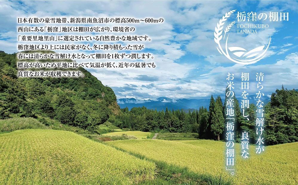 一面棚田が広がる南魚沼市栃窪地区は、標高500m~600mの高地に位置します。