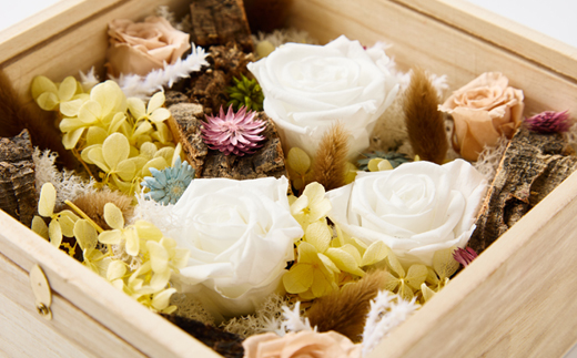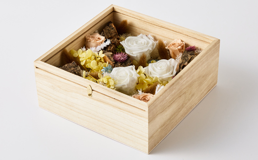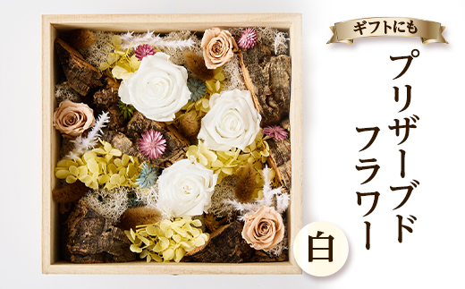 - ■お礼品の内容について ・プリザーブドフラワー白(バラ・アジサイ・カスミソウ等)[1個] 製造地:大分県日出町/加工地:大分県日出町 ■原材料・成分 生花加工品