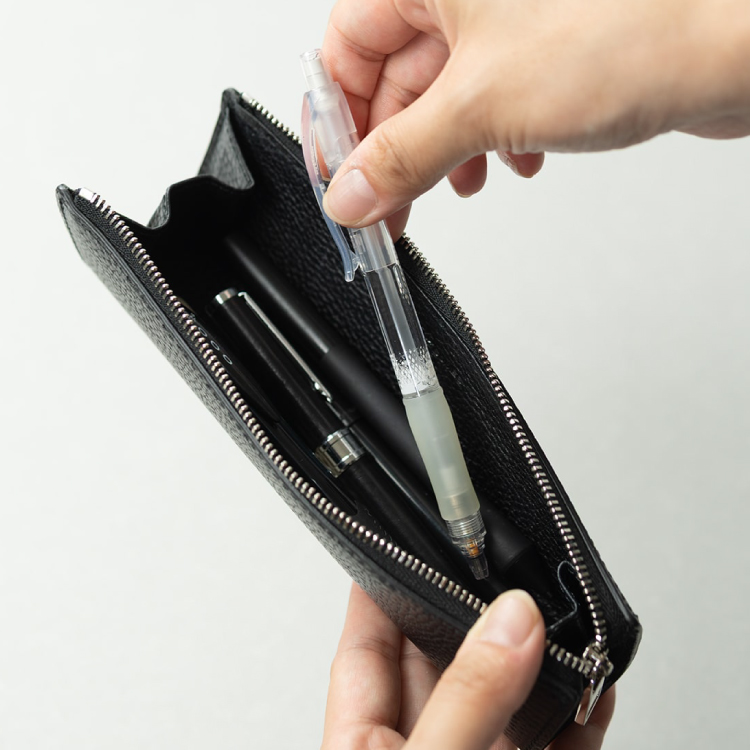 潰れにくい丈夫な仕様で、口が開く心配もないので、いつでもきっちりとした印象をキープしてくれます。