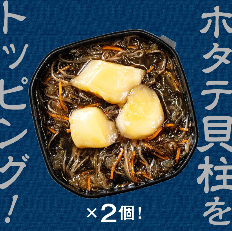ホタテの白い貝柱がトッピングされることで、見た目にも高級感が増します