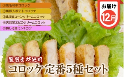 4)お届け月12月:≪コロッケ定番5種セット≫〈黒毛和牛・黒豚入・コーンリーム・甘えびのクリーム・梅しそ鶏ミンチカツ〉(各5個)
