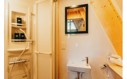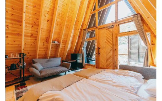 Angler's Base グランピングロッジはAフレームといわれる特殊な形をしたウッドロッジとなっております。