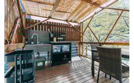 宿泊棟の横には宿泊者専用のプライベートBBQデッキとプライベートジャグジーを併設しており、