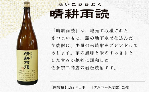 焼酎「晴耕雨読」1.8L×1本