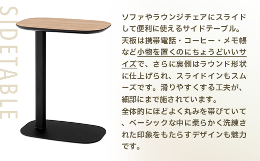 天板は携帯電話・コーヒー・メモ帳など小物を置くのにちょうどいいサイズで、さらに裏側はラウンド形状に仕上げられ、スライドインもスムーズです。