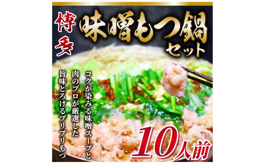 博多味噌もつ鍋 10人前セット(・牛もつ:200g×6パック ・味噌スープ:400g×3パック)