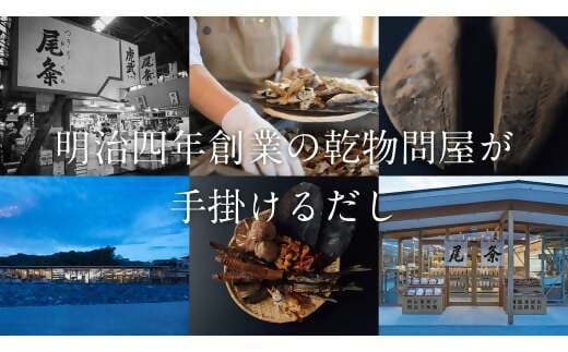 明治4年(1871年)日本橋市場で創業した乾物問屋「尾粂」。以降150年培ってきたきた目利きで国産天然だし原料をお届けしてきました。今回ご用意した商品はすべて多気町にある「無添加商店尾粂」でひとつひとつ心を込めて手づくりしています。店内の加工場で素材をそのまま粉砕しパックにしていますので、素材本来の香りと味わいが楽しめます。