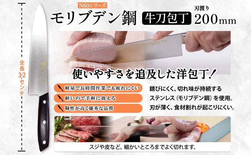 肉、魚、野菜など、あらゆる食材に対応できる洋包丁です。