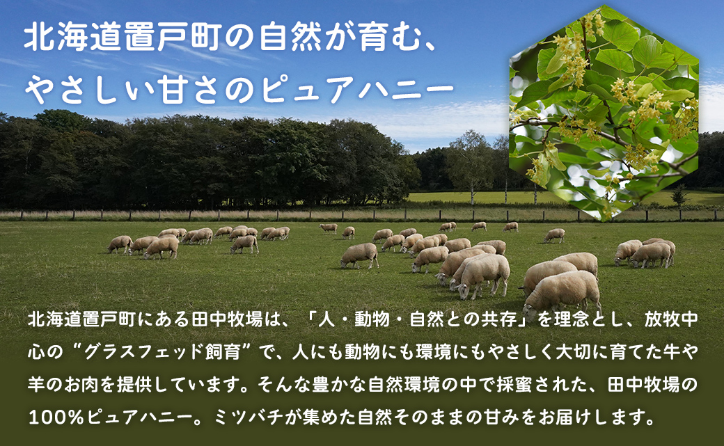 田中牧場の土地で採蜜された100%ピュアハニー 240g×2瓶