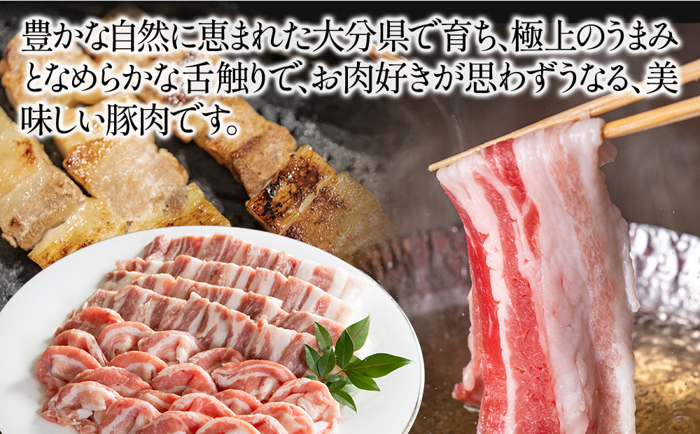 豊かな自然に恵まれた大分県で育ち、極上のうまみとなめらかな舌触りで、お肉好きが思わずうなる、美味しい豚肉です。