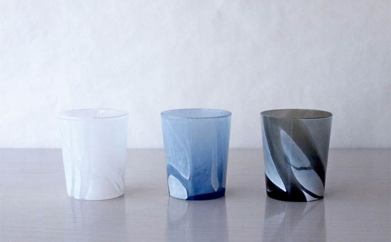 手づくりによる模様の個体差は、テーブルにひとつひとつ違う景色を見せてくれます。水飲みグラスとしてはもちろん、やや重みがあるため、ロックグラスとしてもお使いいただけます。