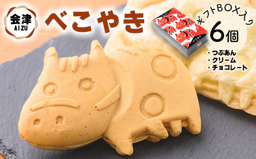 べこやき 6個(つぶあん×2・クリーム×2・チョコ×2)