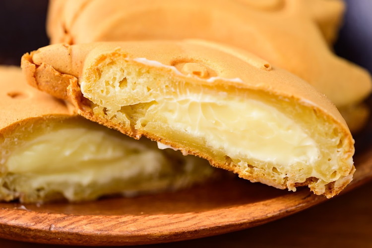 ・会津べこやき 【クリーム】:小麦(国産)、膨張剤、水飴(国内製造)、植物油脂、砂糖、脱脂粉乳、乳蛋白、全卵/加工澱粉、香料、保存料(ソルビン酸)、増粘多糖類、着色料(V,B2.紅花黄、カロチン)、酸味料、(一部に乳成分・卵を含む)