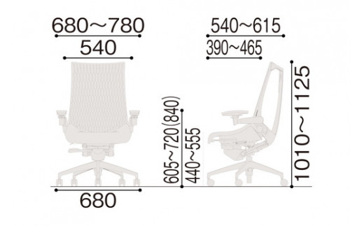 【サイズ】W540(脚:680mm)×D540~615×H1010~1125mm(SH:440~555)