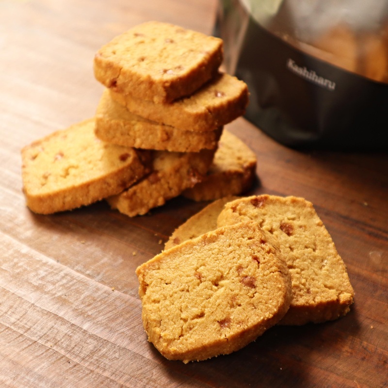 【原材料】小麦粉(国内製造)、バター、砂糖、黒糖、ショートニング、加糖卵黄、加糖練乳、醤油、(一部に乳成分、卵、大豆を含む)