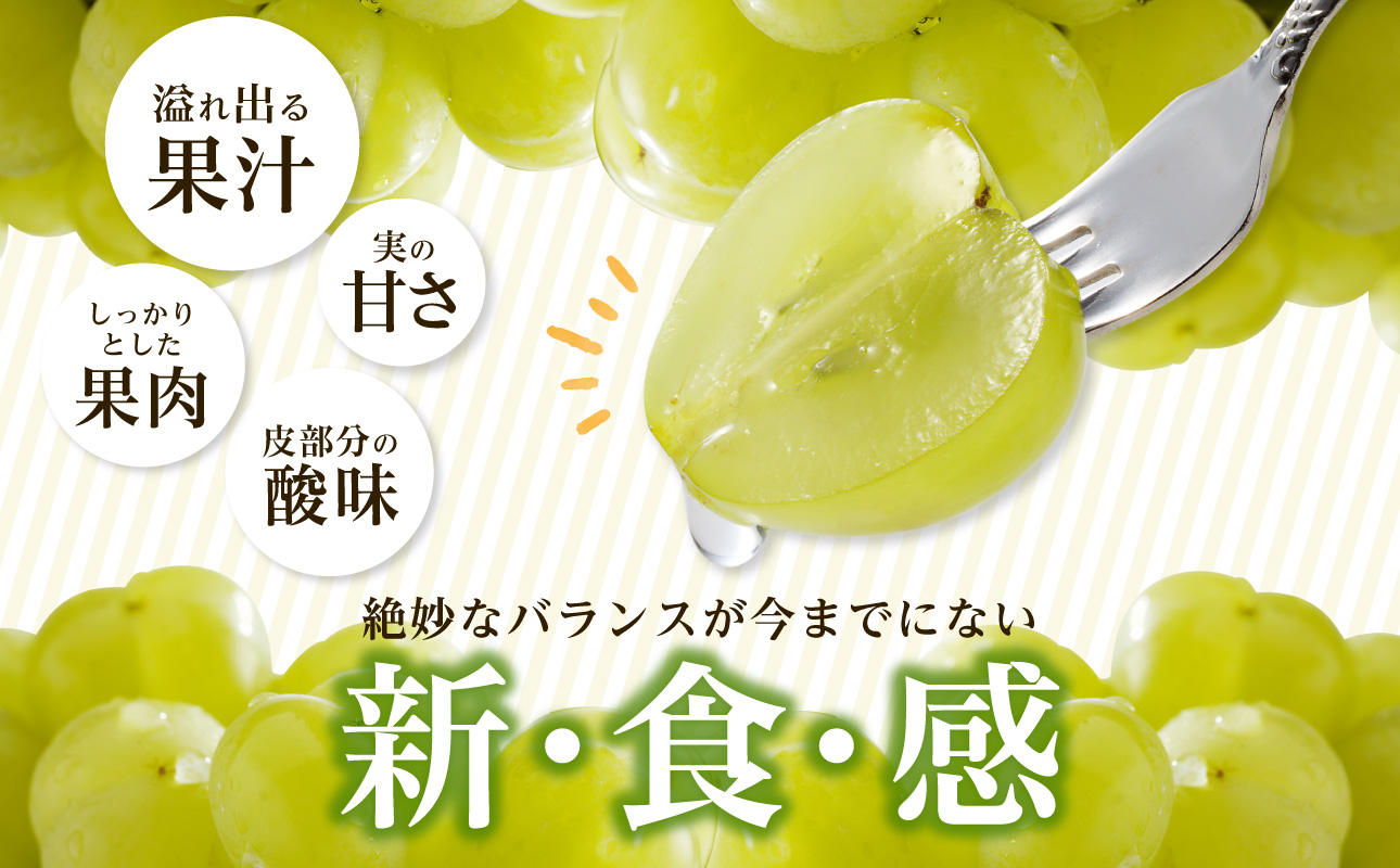 桃太郎ぶどうは、岡山生まれで酸味が無く上品な味わいが評判で、シャインマスカットと同じく種無しで皮ごと食べることができます。