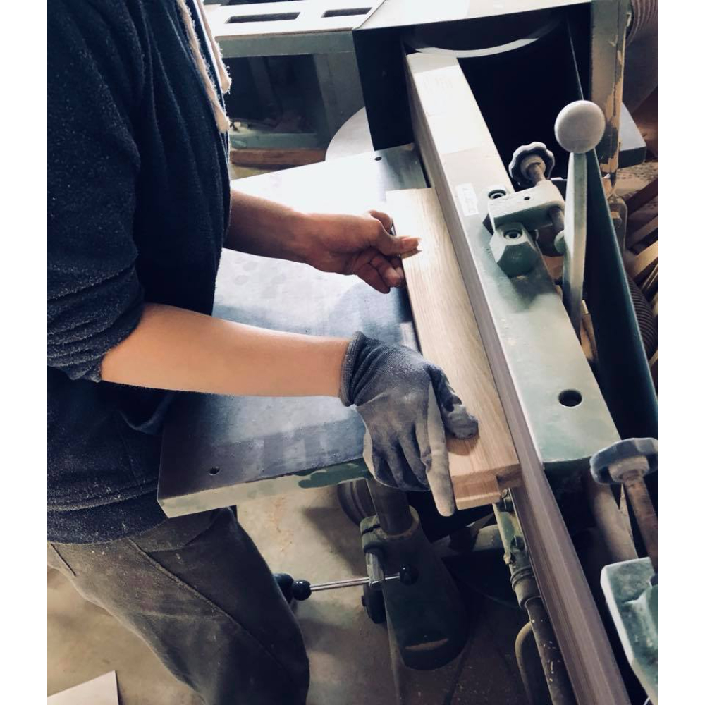 山形県産材、ナラ無垢材を使用しているため、木目や色味が一つ一つ異なります。