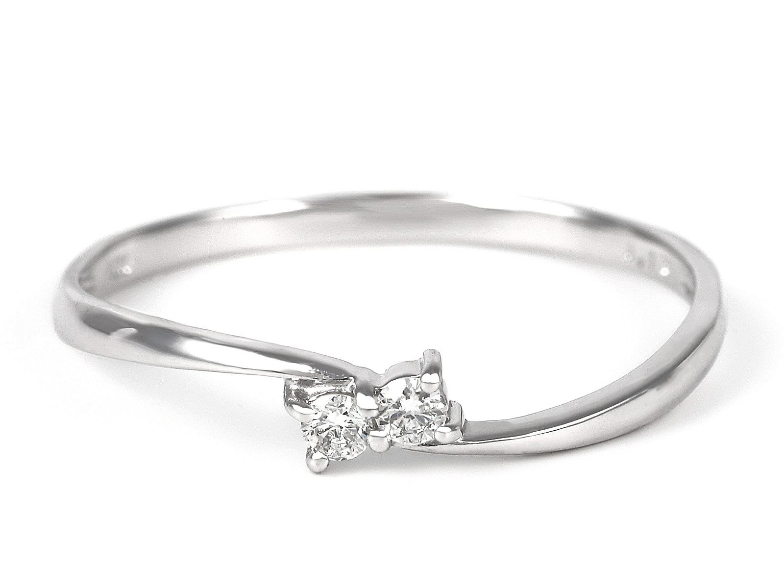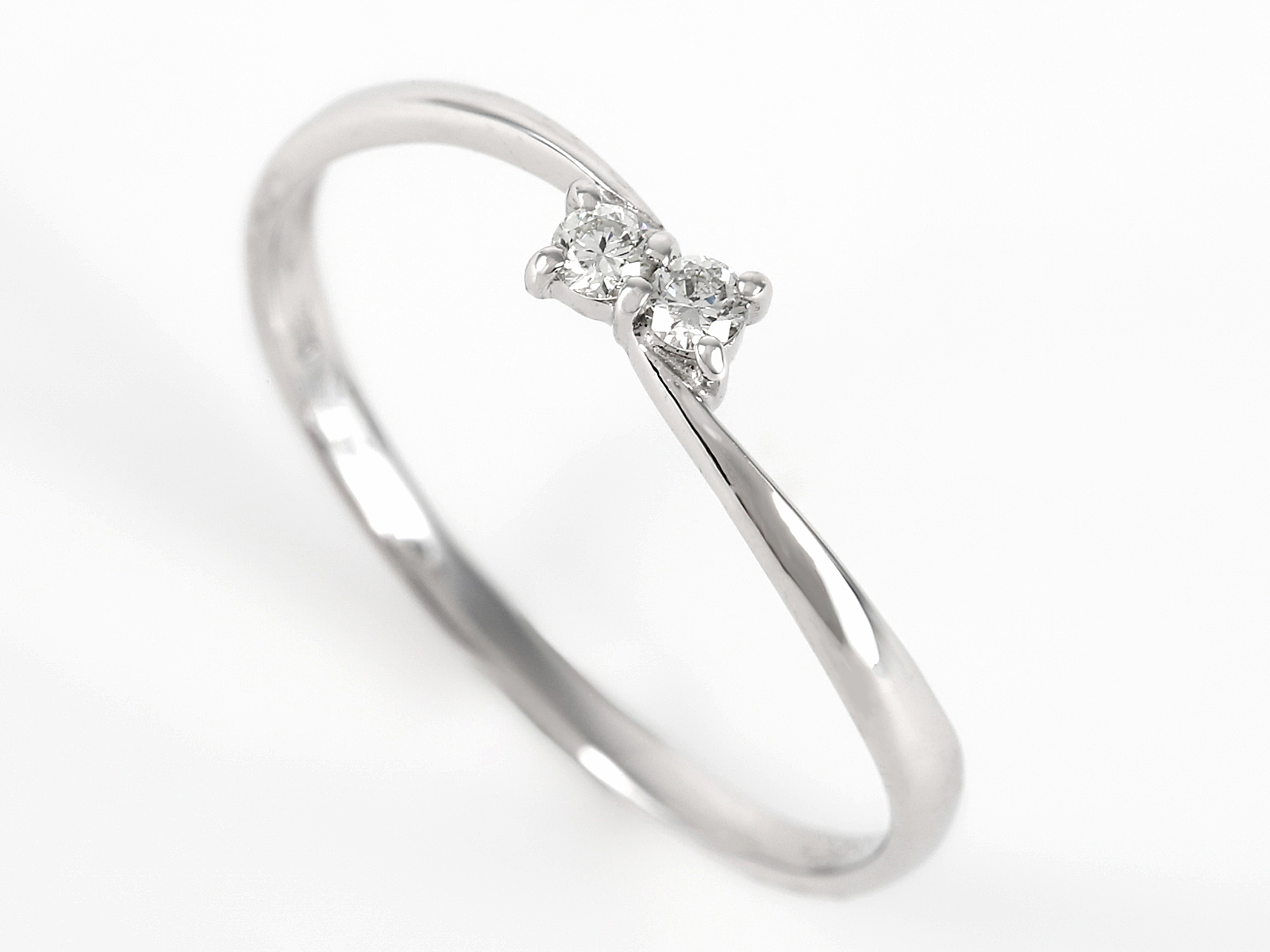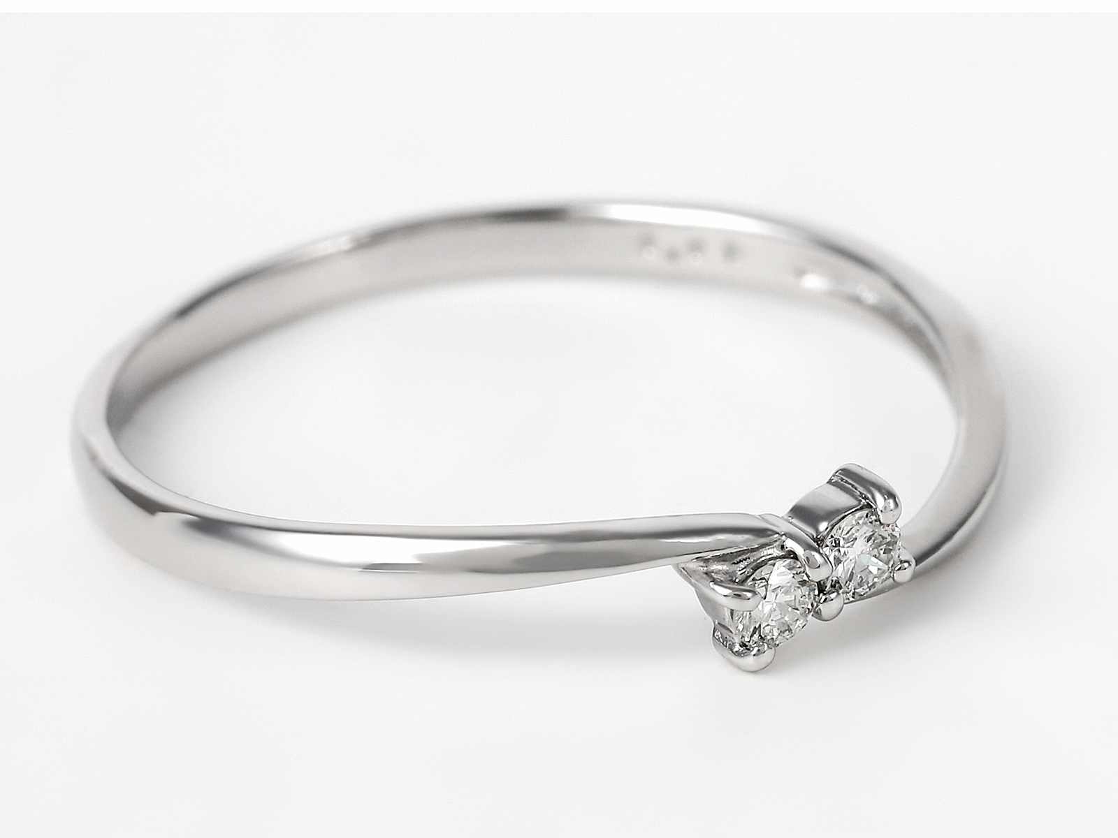 軽くウェーブがかかったようなデザインの指輪に、小粒ですが輝きの良いダイヤモンドを2石留めた返礼品になります。細身の指輪ですので普段使いや、お仕事中に使って頂いても邪魔にならずおしゃれを楽しんで頂けると思います。小粒ですが上質なダイヤモンドをセレクトしています。