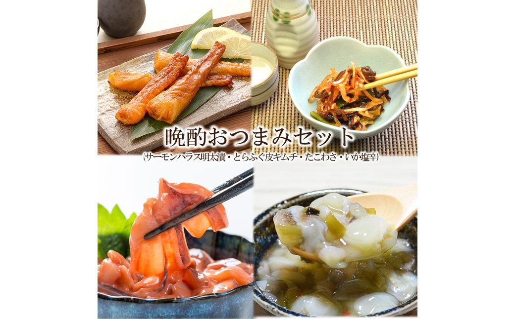 とらふぐ皮キムチ、たこわさび、いか塩辛:180日