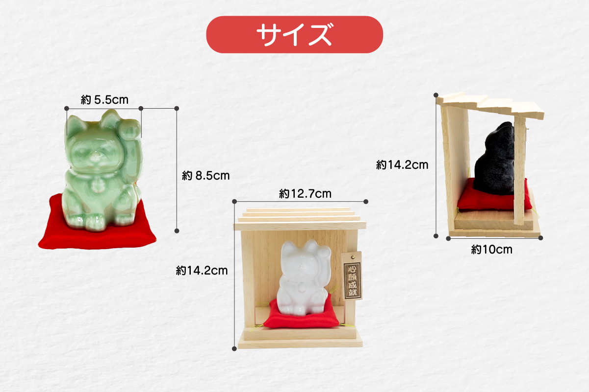 そんな招き猫に日本ならではの祠と焼き物に使われる釉薬を使用し、願いが叶うことを込めて作ったのが成就猫となります。