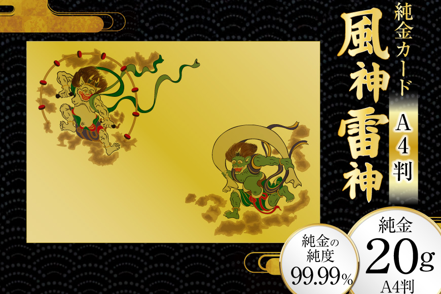 日本が誇る伝統モチーフ「風神雷神」をあしらった、純金カード/A4判サイズ(20g)です。