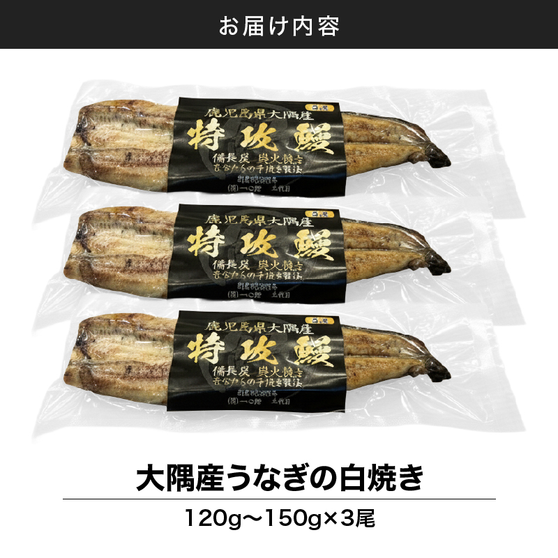 大隅産うなぎの白焼き(120g〜150g)×3尾