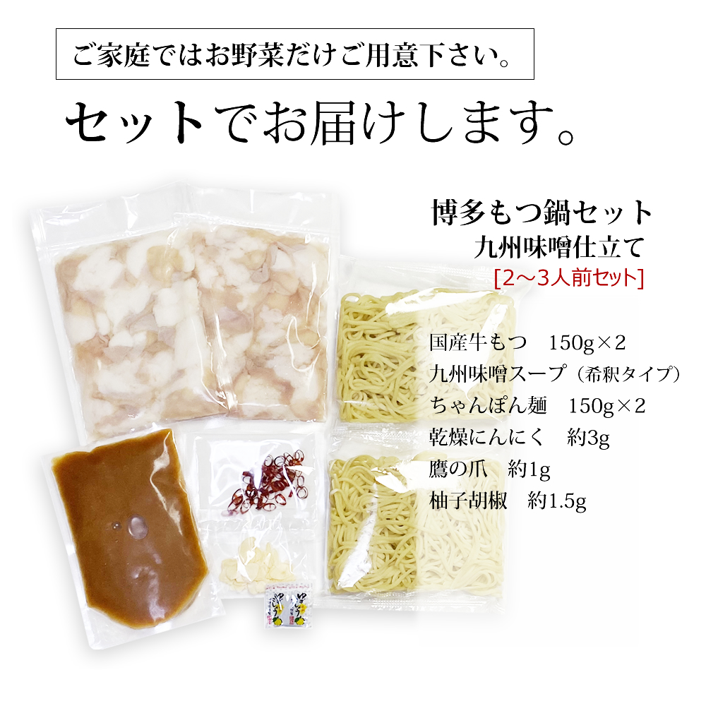 ■もつ鍋用濃縮みそスープ:米みそ〔国内製造〕、しょうゆ、みりん、清酒、砂糖、食塩、おろしにんにく