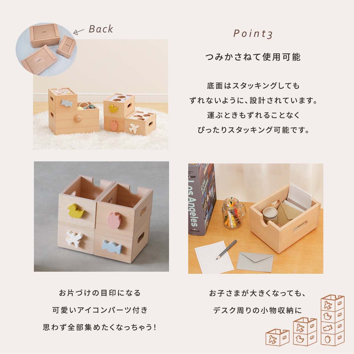スタッキングボックス(sサイズ):W12.3×D16×10.1cm
