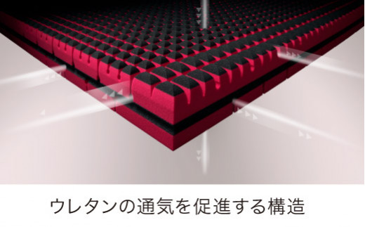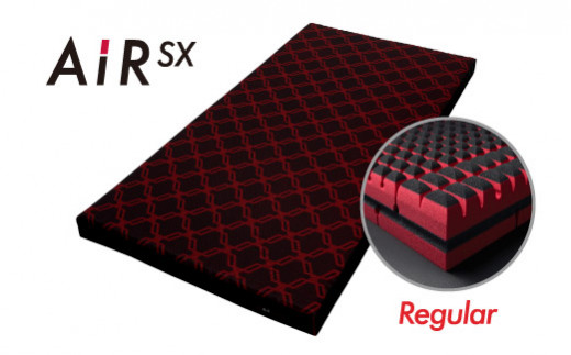 [エアーSX]マットレスは、4層の異なる素材による特殊立体クロススリット構造。しなやかにボディラインにフィットする柔軟性と、しっかり体を支える硬度、寝返りしやすい高弾力性。そのすべてを兼ね備えた緻密なプロダクト[エアーSX]は、新たな調整スリットと、両サイドのエッジを強化したカッティングにより、眠りのフォームを繊細かつタフにサポート。横向きでの寝心地もより快適に、眠りの質を更なる高みへ導きます。