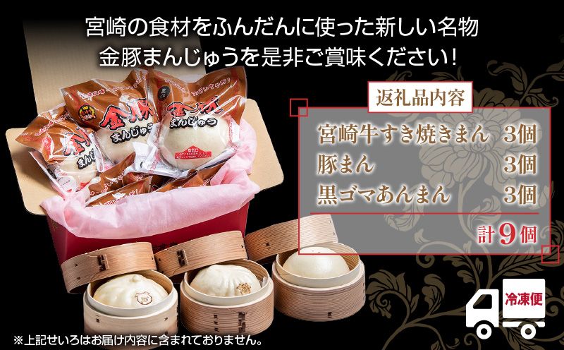 全国和牛能力共進会4大会連続(第9回〜12回大会)内閣総理大臣賞を受賞した「宮崎牛」をふんだんに使って、すき焼き風に仕上げた「金豚 宮崎牛すき焼きまん」