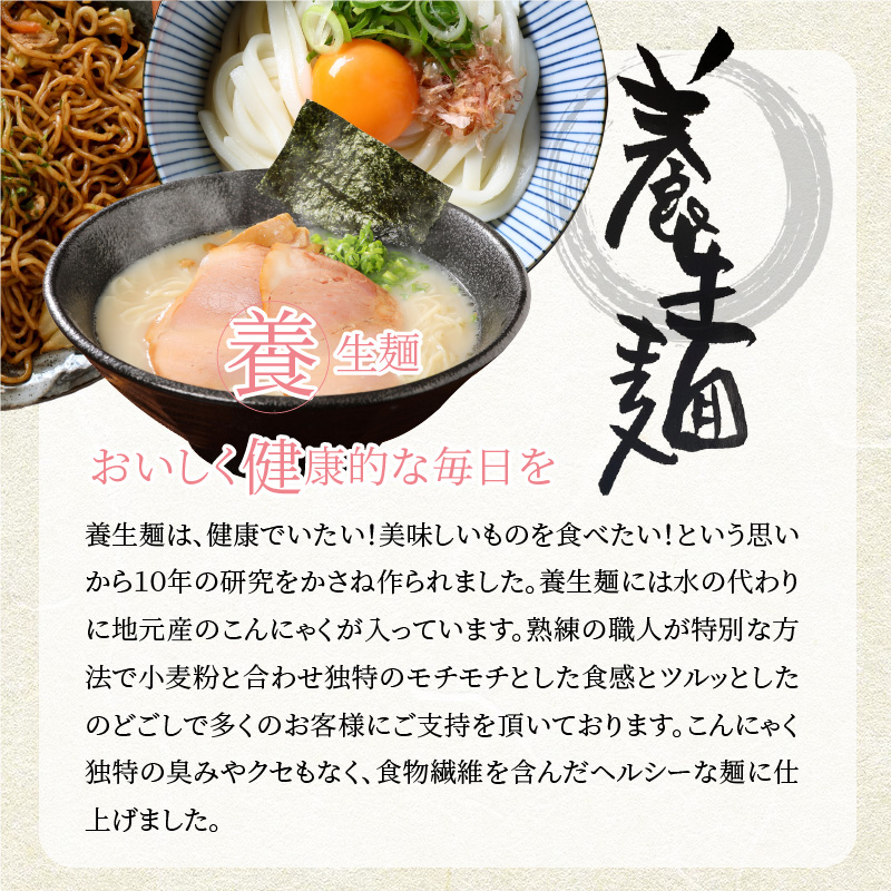 【養生麺ラーメン(トンコツ味、しょう油味)】(麺)各120g×2個、(粉末スープ)各35g×2個