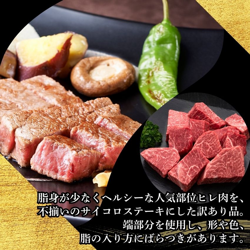 脂身の少ないヘルシーな部位として人気の高いヒレ肉(フィレ肉)を、不揃いのサイコロステーキとしてお届けします。