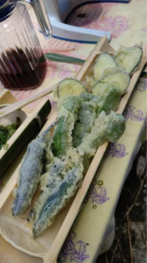 掘りあげたレンコンはその場で洗い、カットして調理に使います。料理はレンコン鍋と竹筒で炊いたレンコンご飯、そしてレンコンサラダと焼きレンコンです。掘ったばかりの新鮮なレンコンを使用するため、レンコンの食感や風味が際立つ料理が楽しめます。