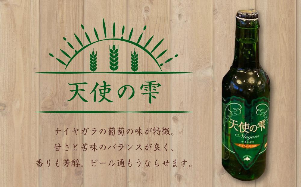 【天使の雫 ナイヤガラ】ぶどうのフルーティな香りと、ホップの苦みが調和した北海道ワイン株式会社こだわりの一品。