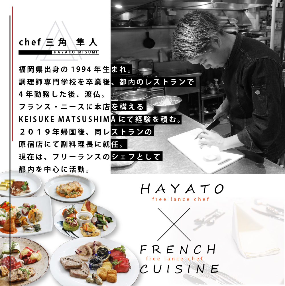 2019年帰国後、同レストランの原宿店にて副料理長に就任。現在は、フリーランスのシェフとして都内を中心に活動。