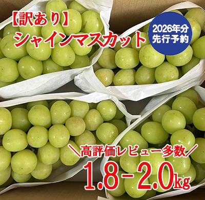 今回は小粒で粒にスレ、黄~茶の変色があり、房の形がややいびつな訳ありシャインマスカットを数量限定でお送りいたします。ご家庭用としていかがでしょうか。