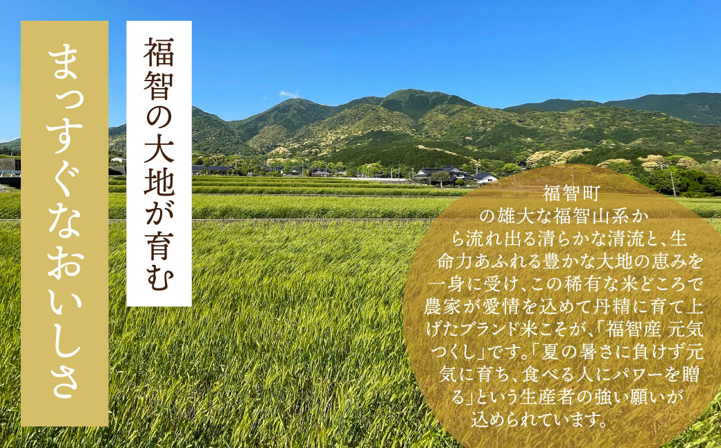 福岡県福智町の雄大な福智山系から流れ出る清らかな清流と、生命力あふれる豊かな大地の恵みを一身に受け、この稀有な米どころで、農家が愛情を込めて丹精に育て上げたブランド米こそが、「福智町産元気つくし」です。