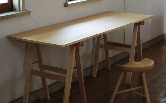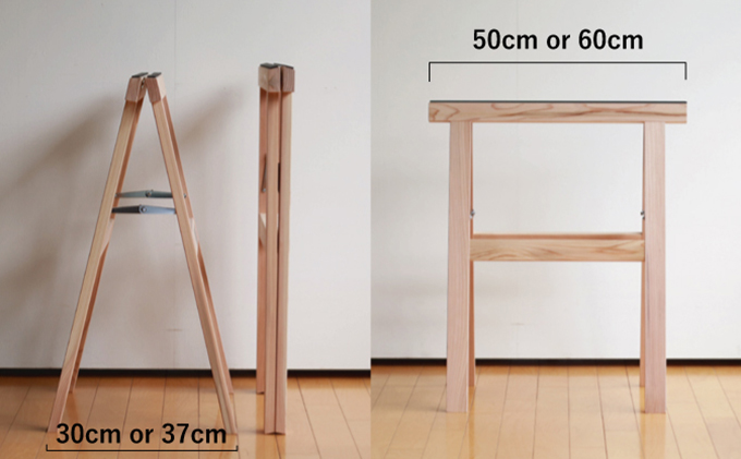 大井川流域の杉材を使った折り畳み式スタンド2脚と天板のセットです。