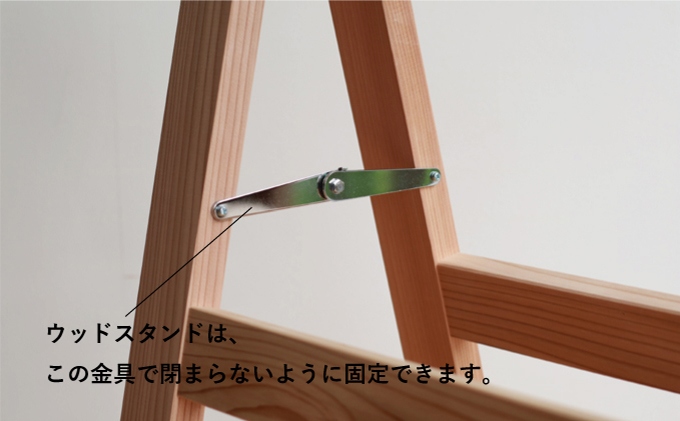 ※ウッドスタンドは必ず金具を平らになるまで押し開き、お使いください。