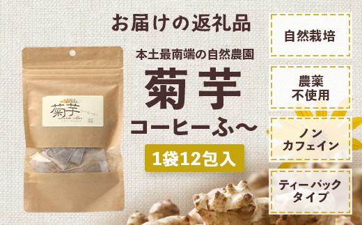当園独自の製法で菊芋の持つ特性を最大に活かしつつ「香り」「旨味」をバランス良く引き出した「菊芋コーヒー ふ~」をぜひご賞味ください。