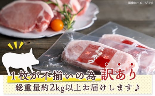 宮崎県ブランドポーク認定「観音池ポーク」のロース肉をとんかつ用にカットしました。1枚が不揃いの為、【訳あり】で総重量約2kg以上お届けします♪とんかつやトンテキなど短冊に切っていろんな料理でお使いください。