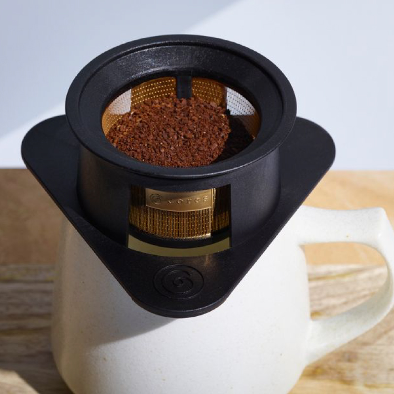 純金メッシュのフィルターで、コーヒー豆本来の美味しさを手間なくダイレクトに引き出せる、シングルカップゴールドフィルター。