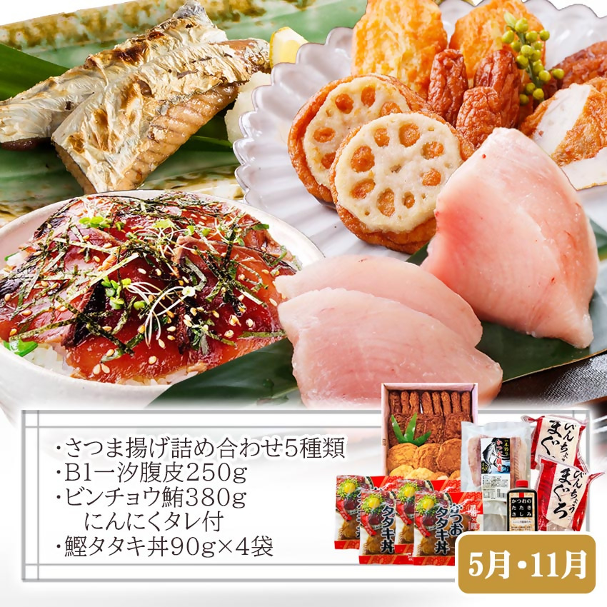 ・さつま揚げ&鮮度抜群な一本釣りかつお・まぐろ[定期便(半年で3回)]