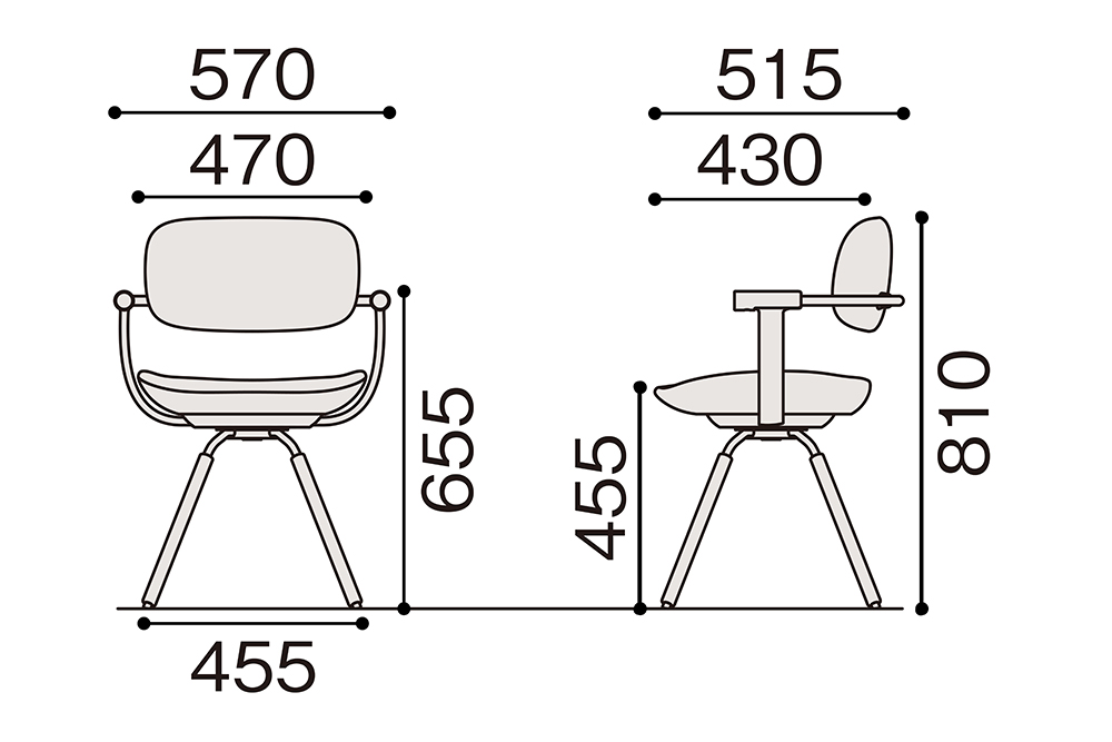 【サイズ】W570(脚:455mm)×D515×H810mm(SH455mm)