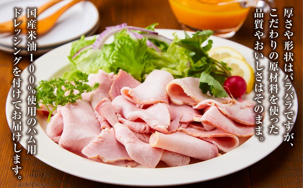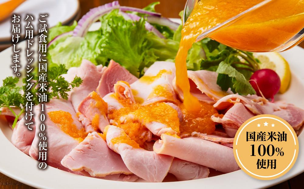 国産米油100%使用のハム用ドレッシングを付けてお届けします。