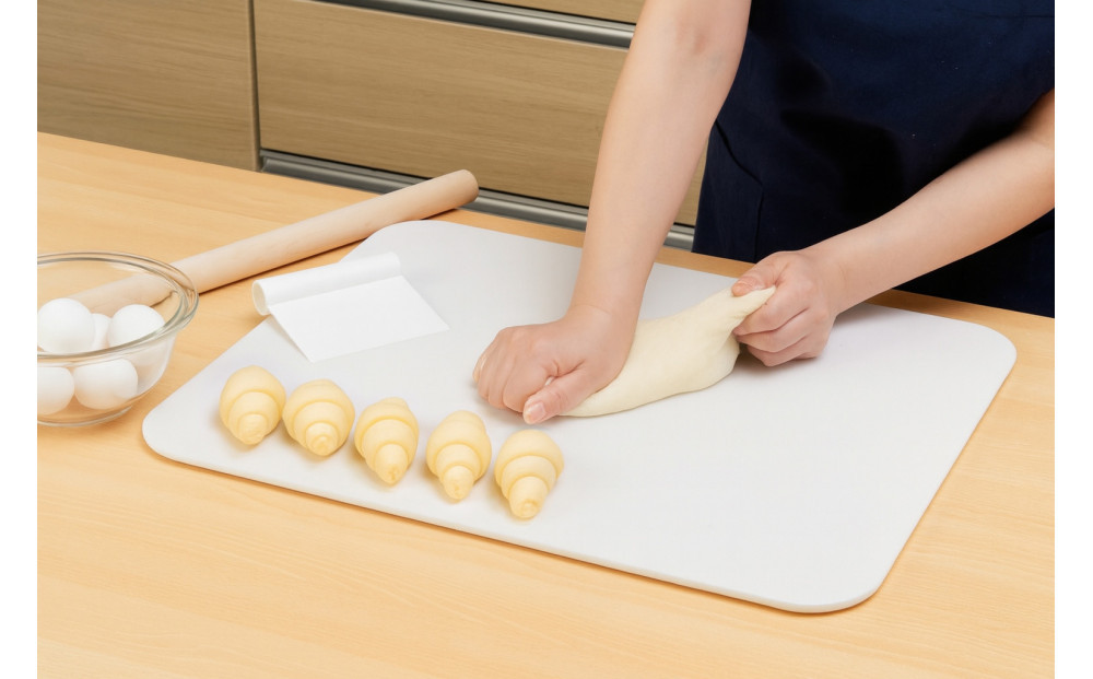 アクリル人造大理石製の「パンこねボード」は、安定感・清潔感・使いやすさを兼ね備えたプロ仕様のこね台です。