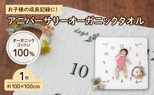 アニバーサリーオーガニックタオル(約100×100cm・1枚) 【m100-09】【トクダ】
