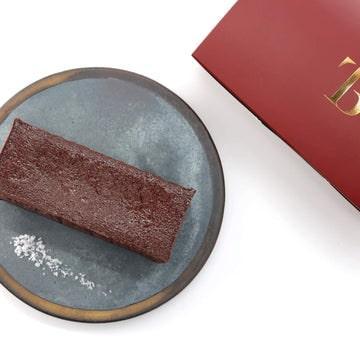 しっとりと濃厚なショコラテリーヌには、赤いベリーや成熟したダークフルーツの香りをまとうチョコレート〈マヤン・レッド(XOCO社)〉70%をたっぷりと。きび砂糖の甘さとほろ苦さのバランスが絶妙で、さらに別添えの〈笹川流れの塩〉をプラスすると一層コクが際立ちます。