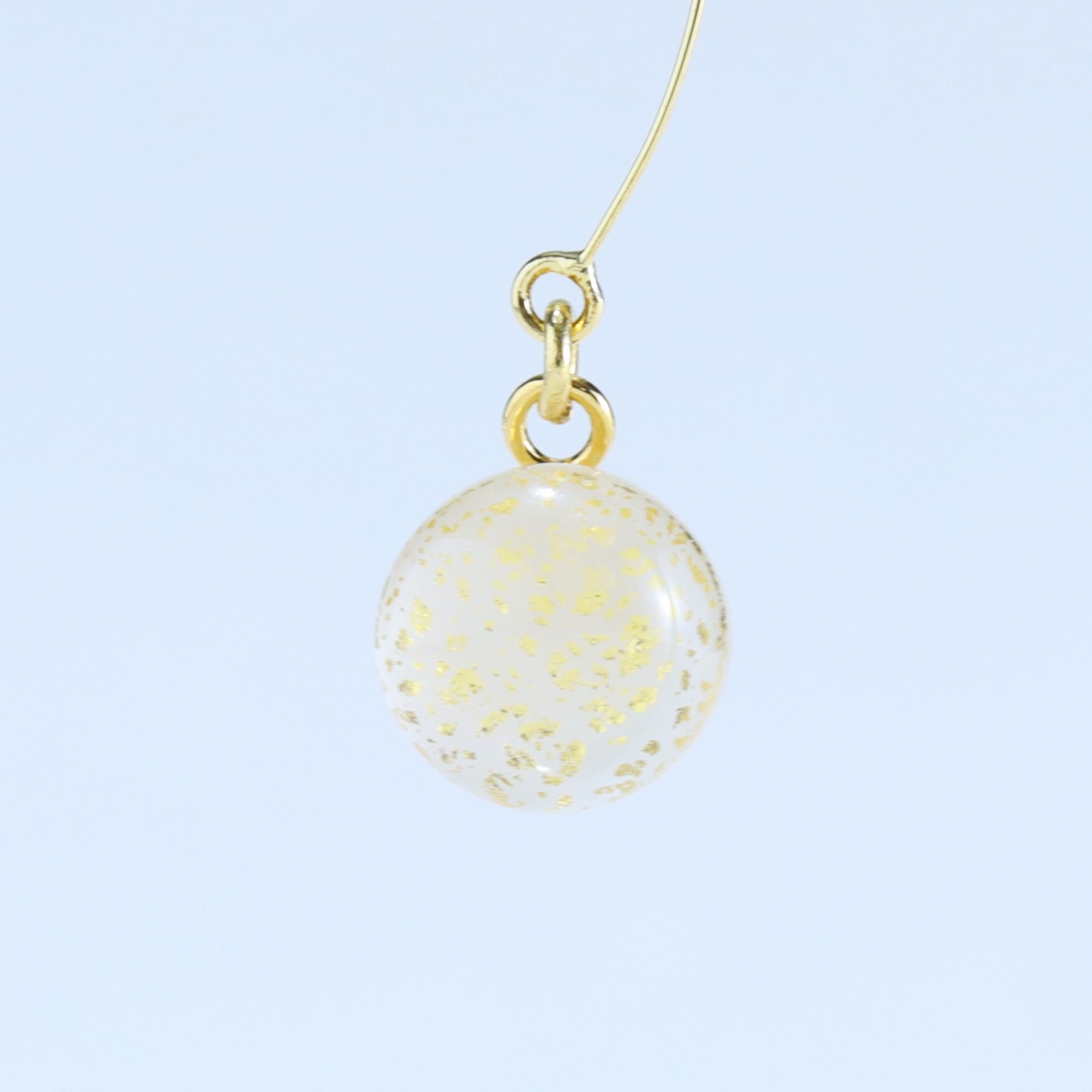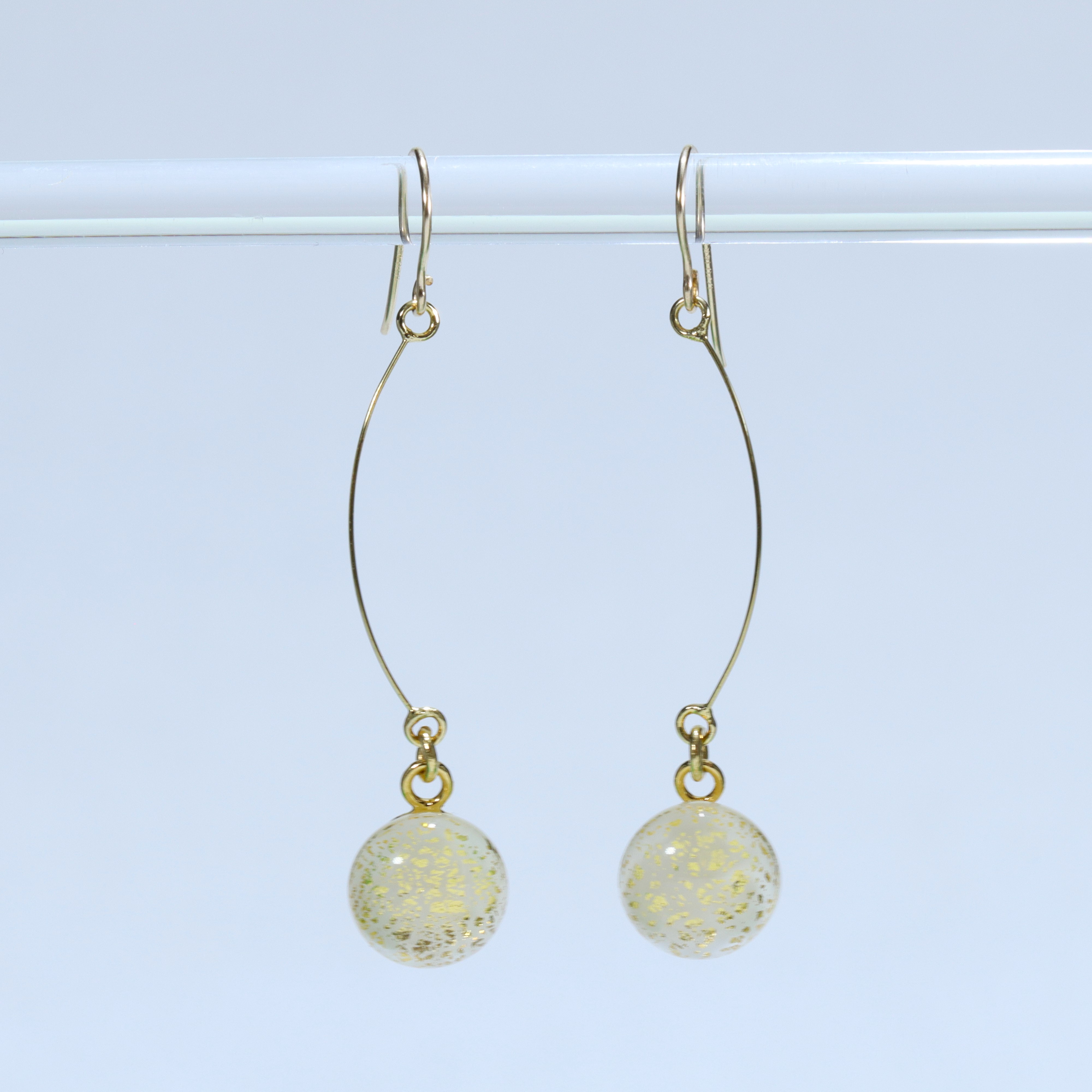 色ガラスに金箔を焼付けてシンプルながらも耳元で揺れ動きキラキラと輝きます。