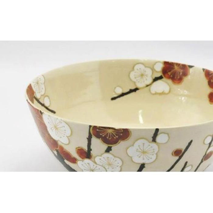 当窯の絵付け師が本物の金粉を用いて、上品で華やかな梅の花や枝を一つひとつ手描きしています。